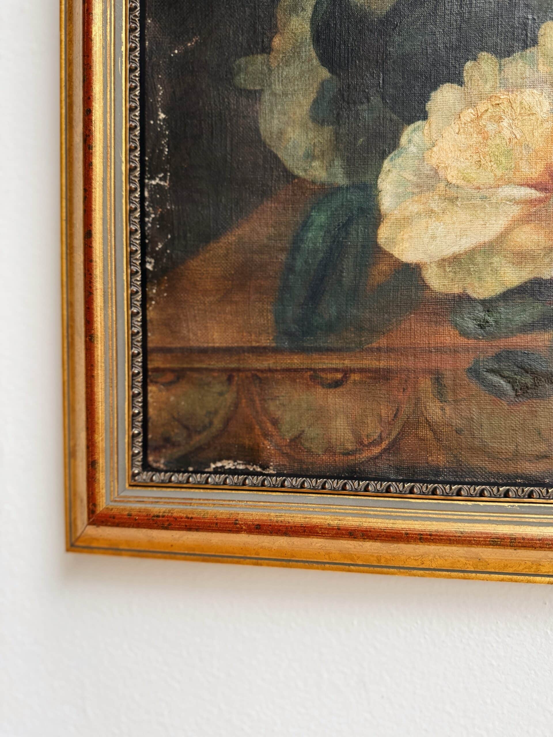 Antique 1800’s Rose Still Life Painting on Canvas