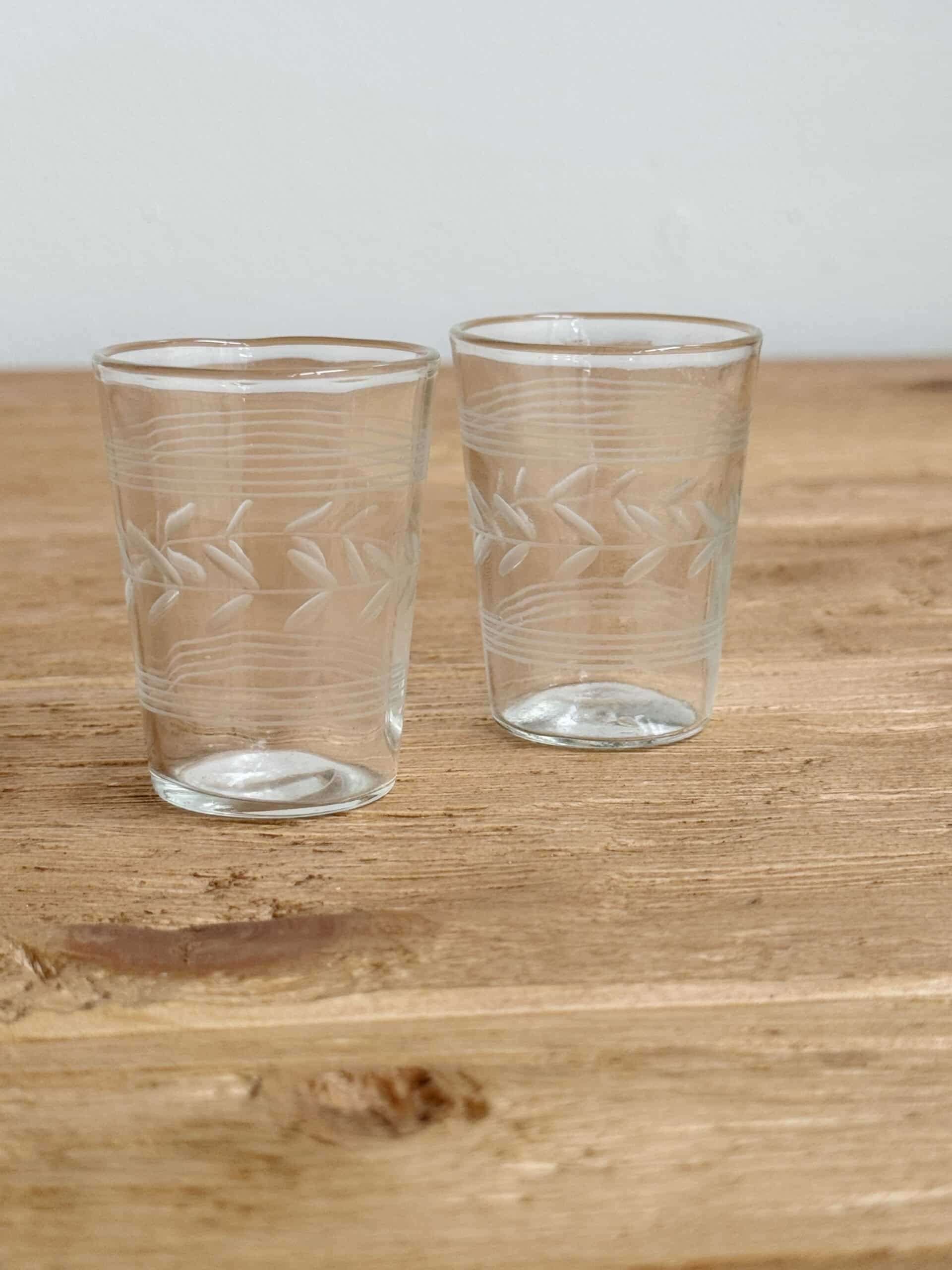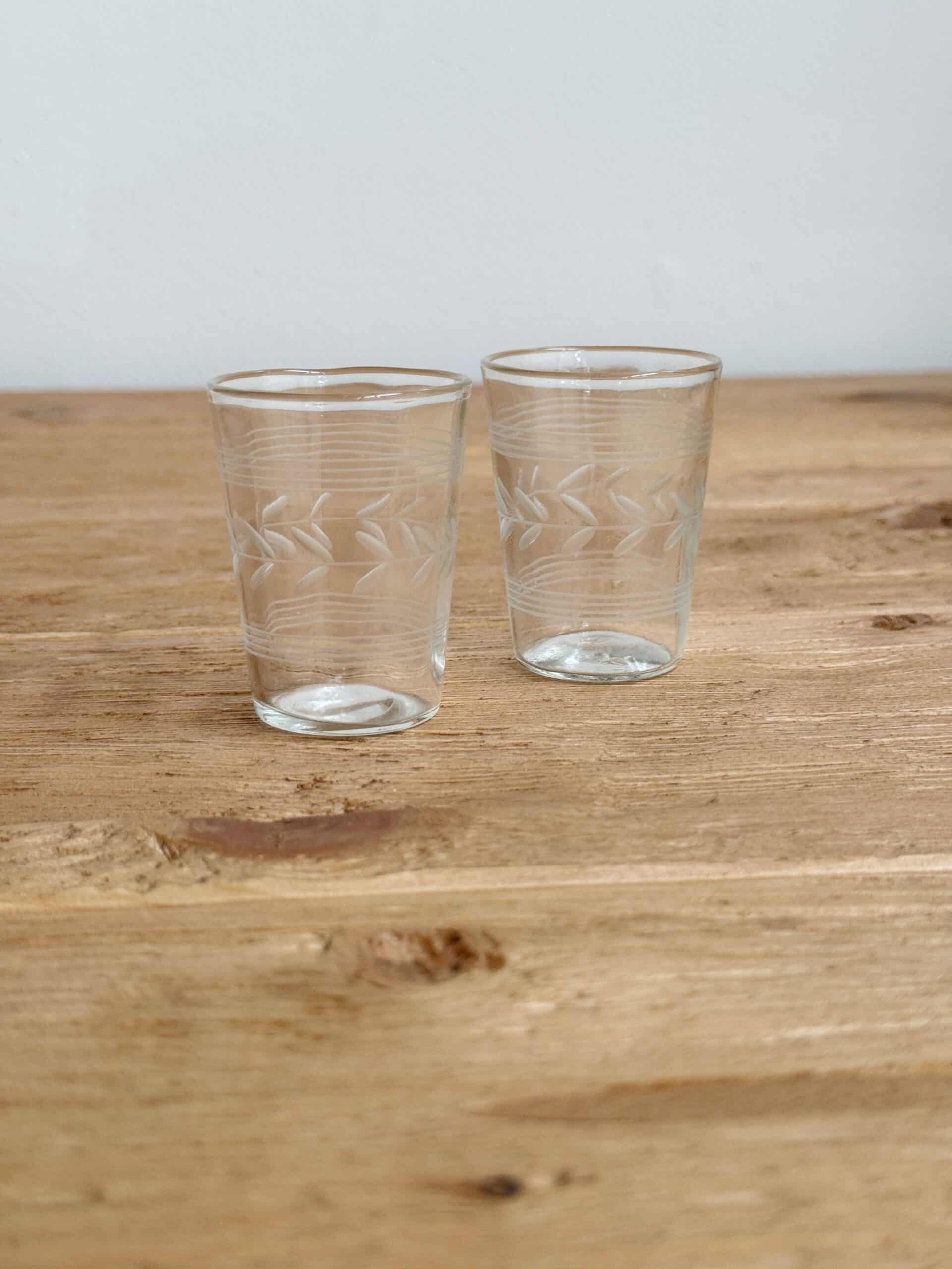 A chic way to pour your shots! This pair of etched shot glasses will add a little charm to your bar or cocktail making.