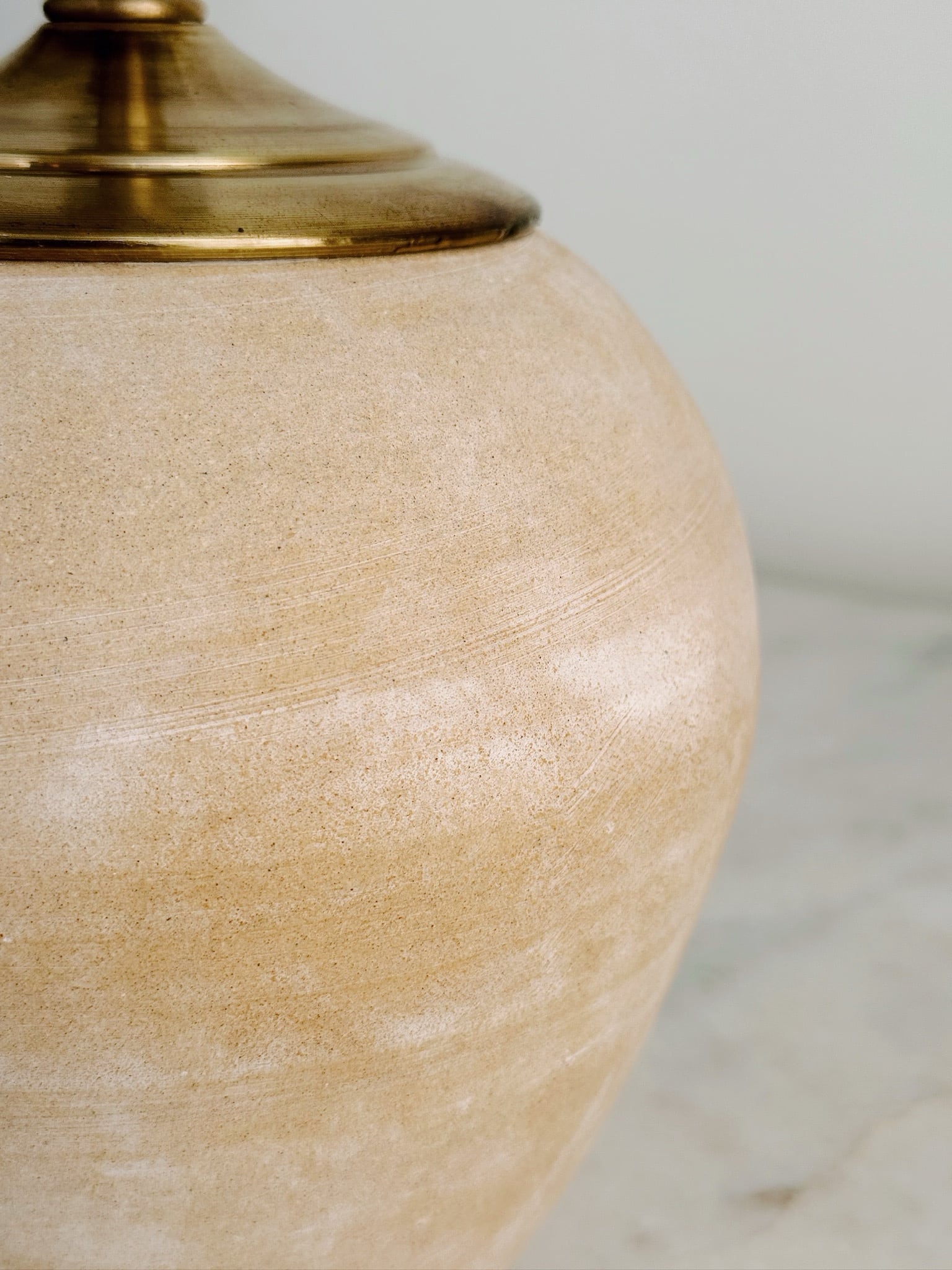 | Material | Ceramic with raw finish. Brass hardware and fabric cord. |