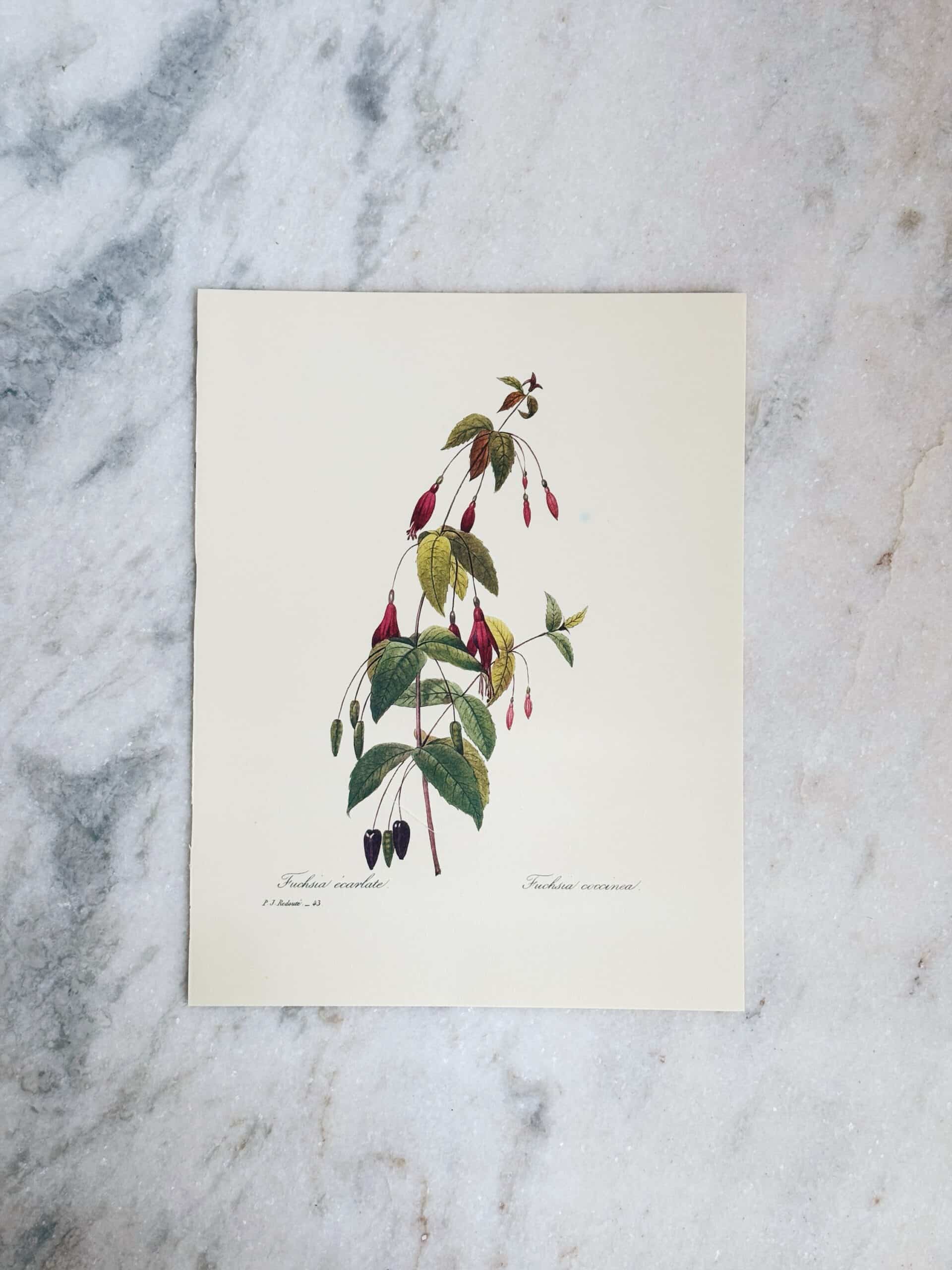 Vintage print in great condition from Beautiful Flowers and Fruit by Pierre-Joseph Redoute. This book is a reproduction of antique works from the early 1800s, emphasizing a scientifically exact depiction of these flowers. Each one is gorgeous, it’s hard to choose a favorite!
