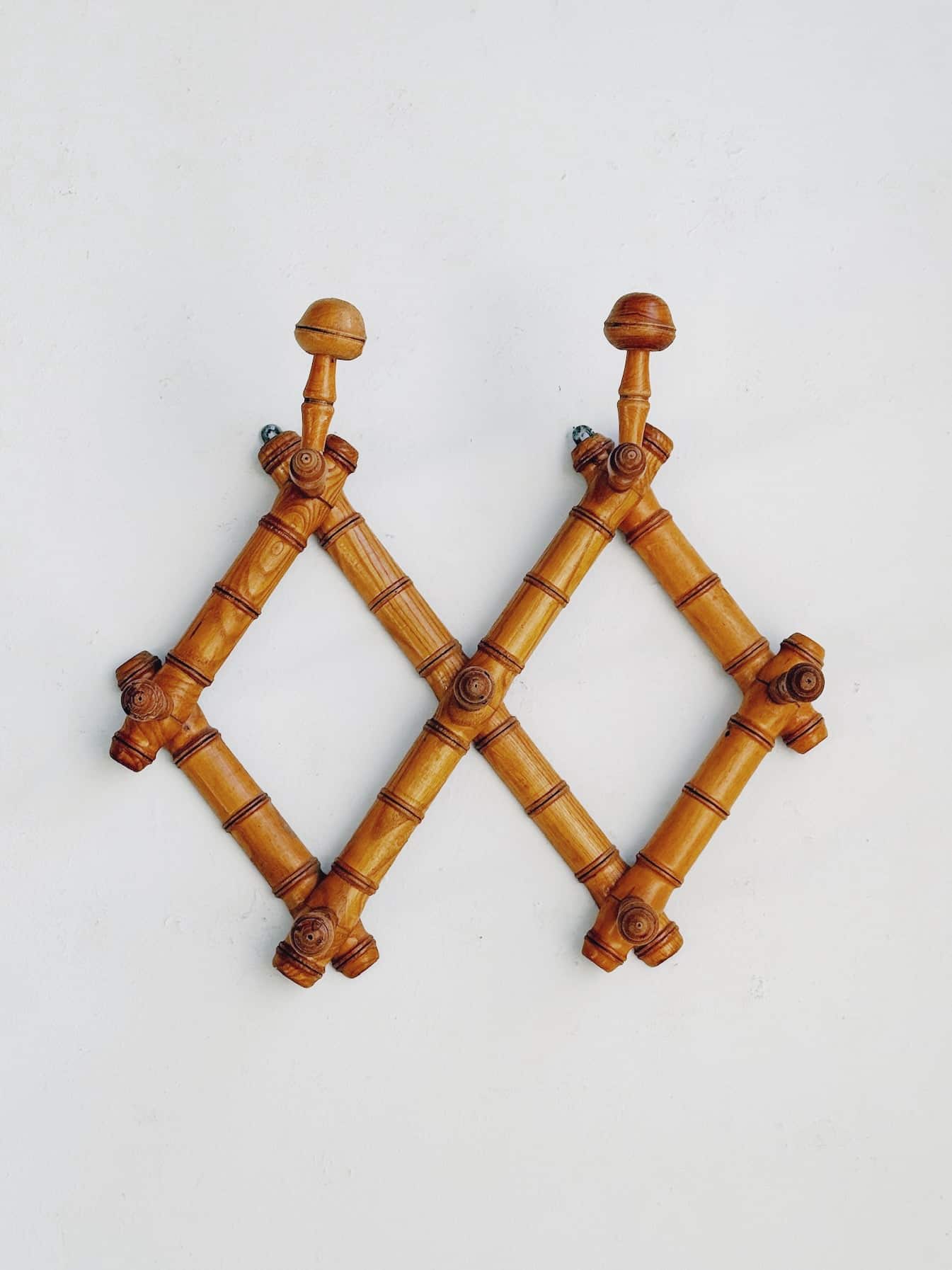 These quirky antique French bamboo racks bring so much personality to your entry, bedroom, or utility space. The upper hooks are perfect for perching hats, and the lower for hanging light jackets and bags.